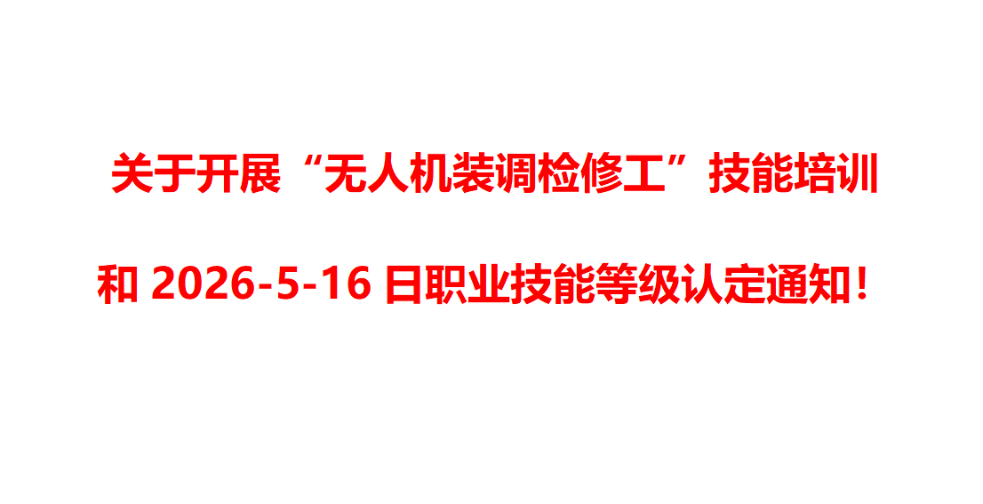 关于开展“无人机装调检修工”职业技能培训和2026-5-16日职业技能等级认定通知!
