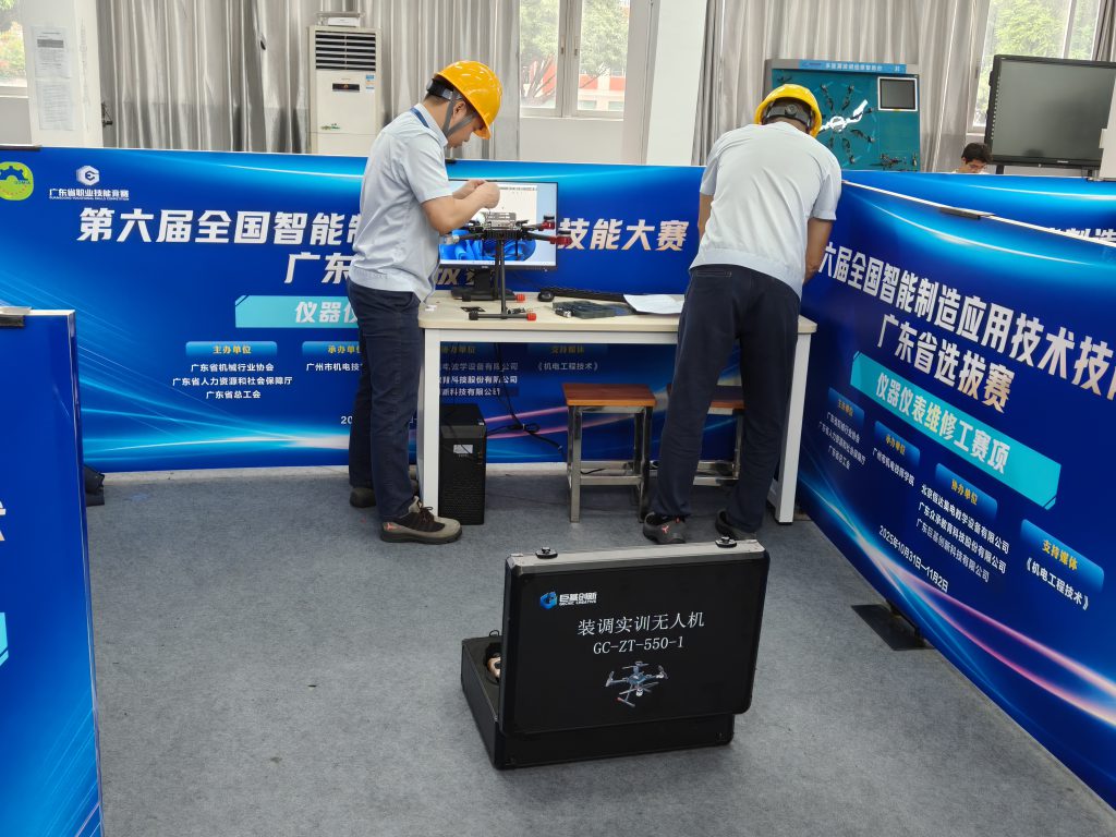 作为本次赛事的协办单位,广东巨基创新科技有限公司深度参与核心赛项支持,全程负责仪器仪表维修工(智能制造传感及控制技术方向)模块二 —— 无人机组装调试的技术保障与平台搭建工作,为14支双人参赛队伍打造了专业、公平的竞技舞台。